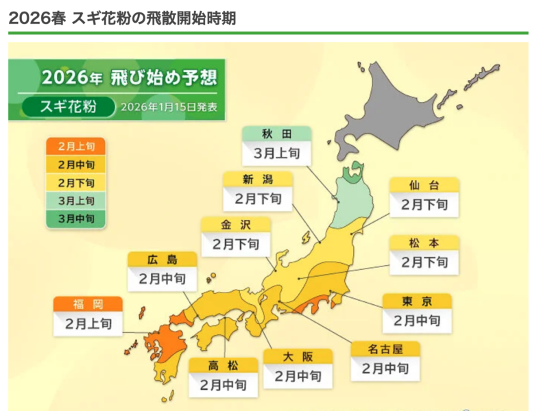2026年春の花粉予測 早めの対策を!